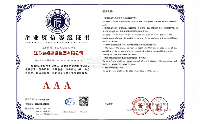 3A級(jí)資信等級(jí)證書